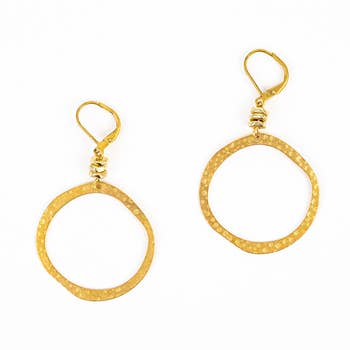 Ces boucles d'oreilles du commerce équitable sont fabriquées à la main en laiton à Nairobi par des artisans équitablement rémunérés dans une coopérative de travailleurs. Elles sont ornées de délicates chaînes suspendues à des arcs en laiton.