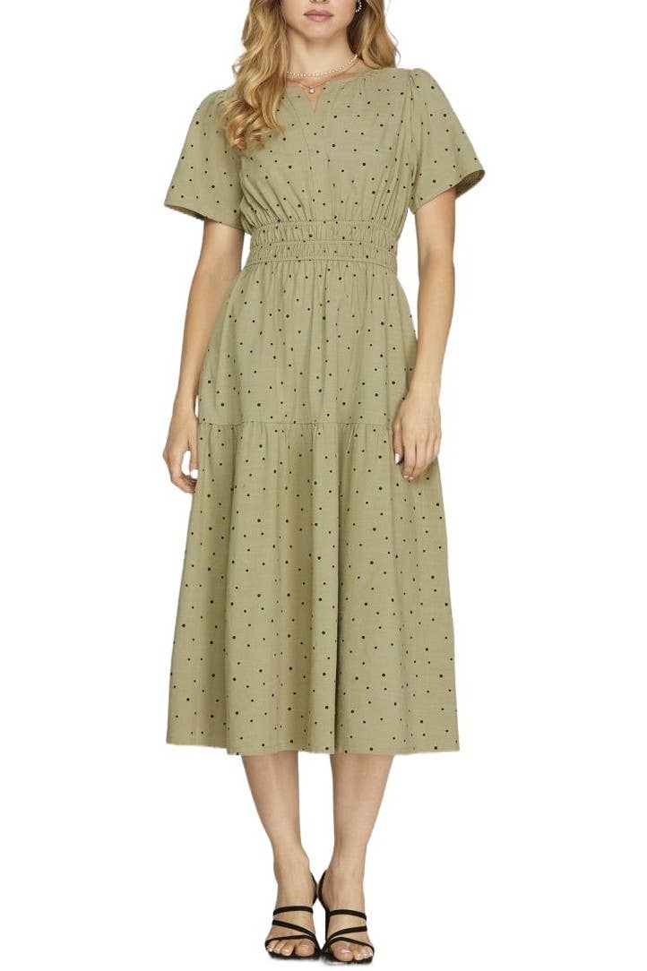Robe midi à manches courtes et col en V à étages. / Mesures du style pour la taille S / Conçu aux États-Unis - Longueur du corps : 128,3 cm - Largeur de la poitrine : 88,9 cm - Longueur des manches : 27,9 cm. / Tailles du modèle - Porte la taille S - Taille 1,75 m, Poitrine 81,3 cm, Taille 64,8 cm, Hanches 91,4 cm. / Contenu du préemballage - Dans une pièce de XL(1) par couleur uniquement. / Composition du tissu - TISSÉ / 100 % coton.