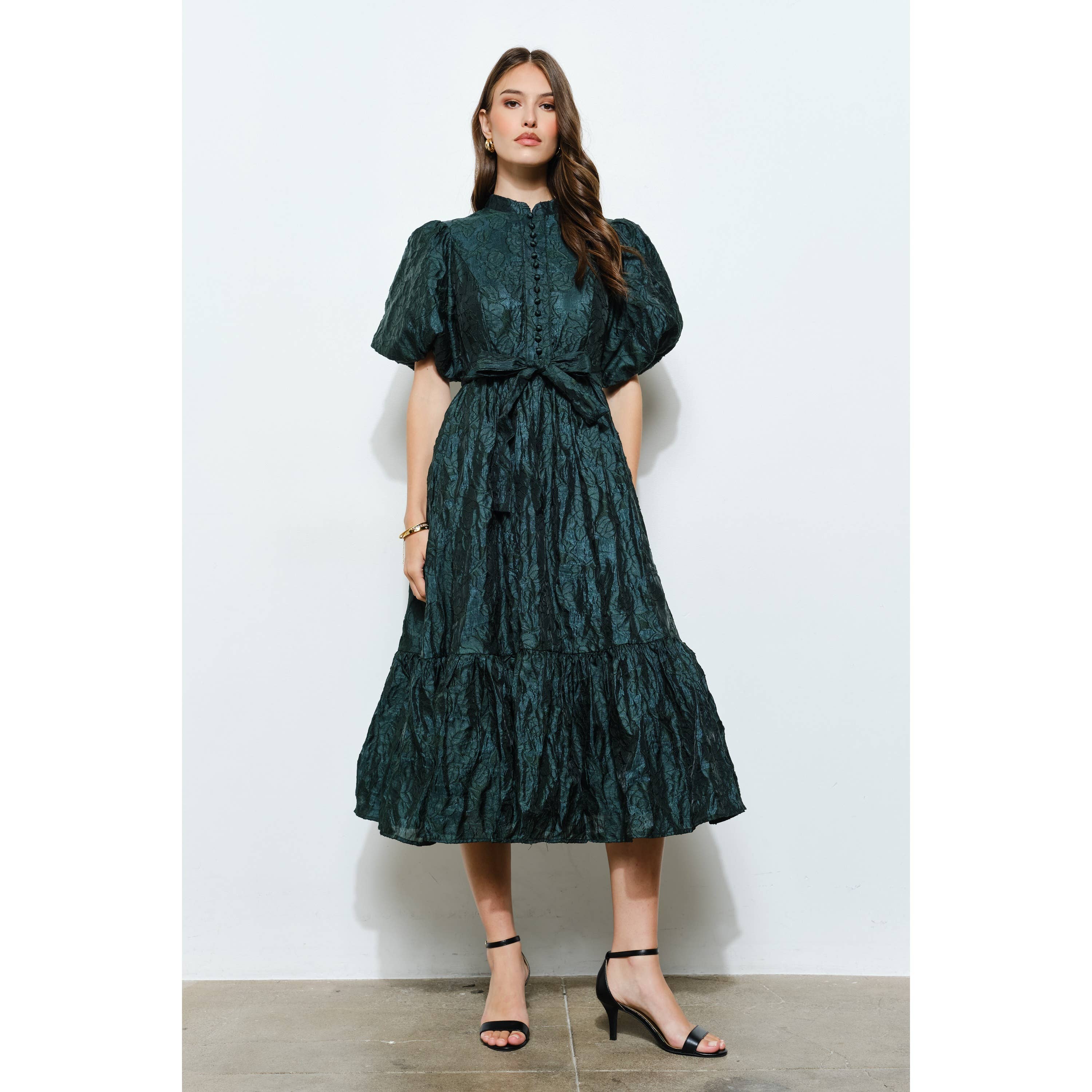 Robe texturée à manches bouffantes
