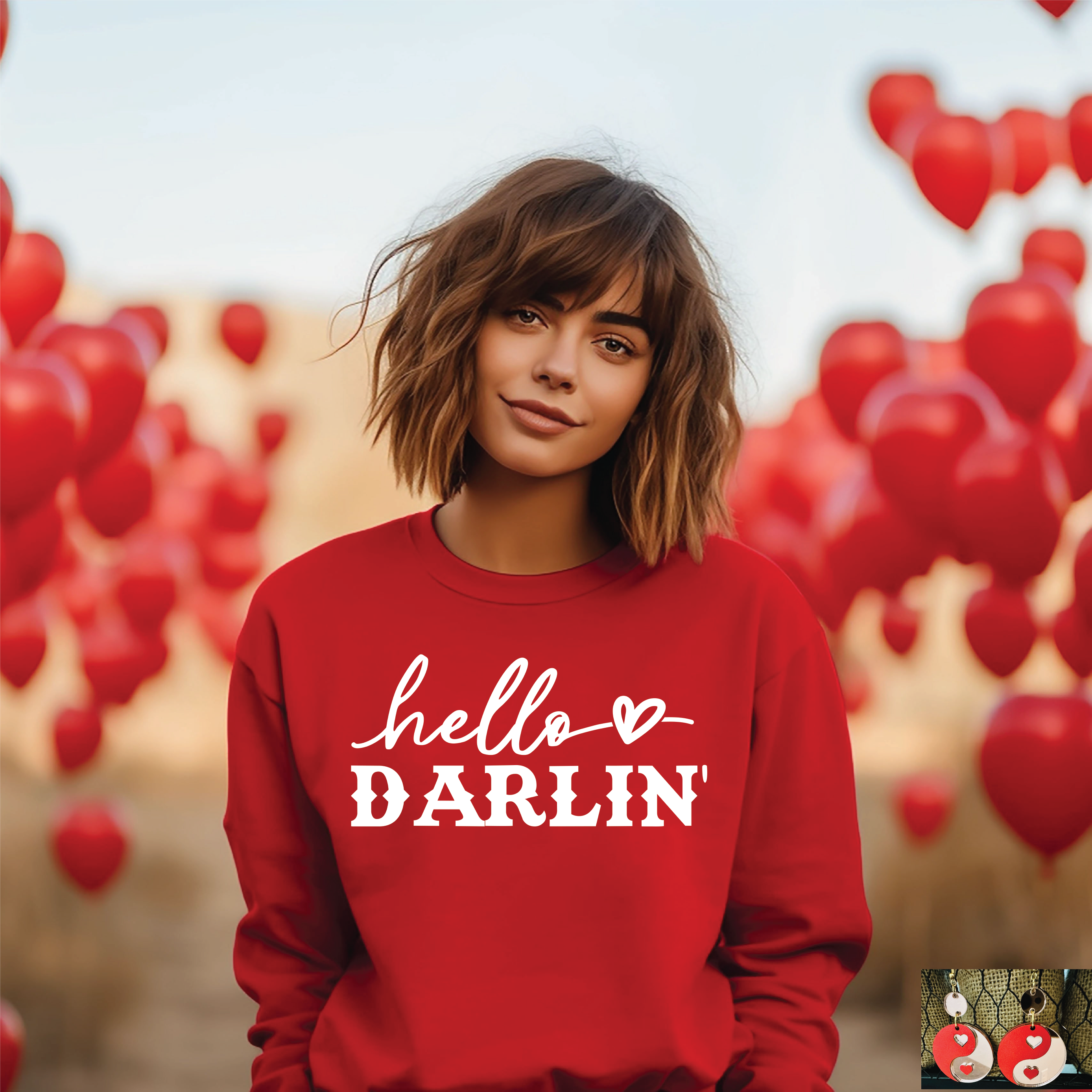 DTG sur un sweat-shirt rouge *En raison de pénuries de stock, les sweat-shirts seront soit Tultex, soit Gildan* Les t-shirts à manches courtes et longues sont également disponibles et seront sur une Bella Canvas ou Next Level. Les sweat-shirts et les chemises ont une coupe unisexe. Se marie parfaitement avec nos boucles d'oreilles Ying Yang !