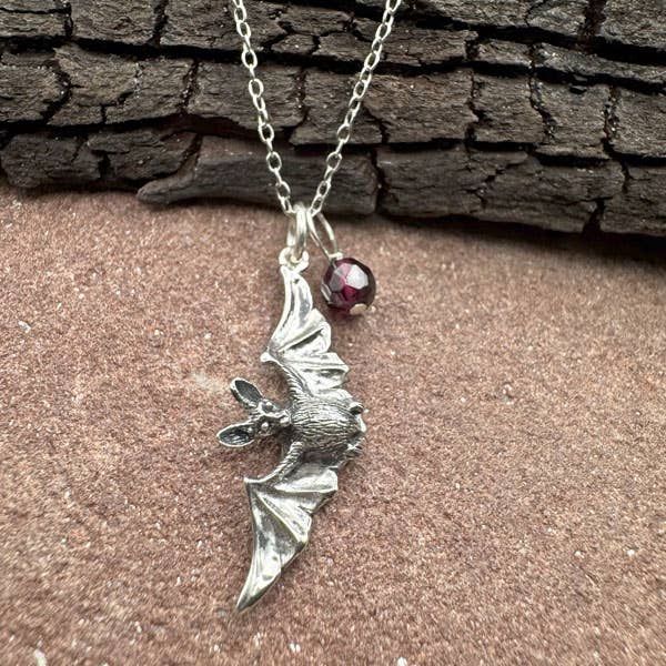 Ce collier délicat est fabriqué à la main avec une breloque de chauve-souris détaillée en argent sterling attachée à une chaîne forçat en argent sterling de 45,7 cm avec fermoir. Le collier est livré sur une belle carte, imprimé sur du papier cartonné de haute qualité de 110 lb. Breloque chauve-souris en argent sterling Chaîne de 45,7 cm en argent sterling. Fermoir mousqueton sécurisé. Le pendentif mesure 15 x 11 mm. Emballage cadeau inclus.