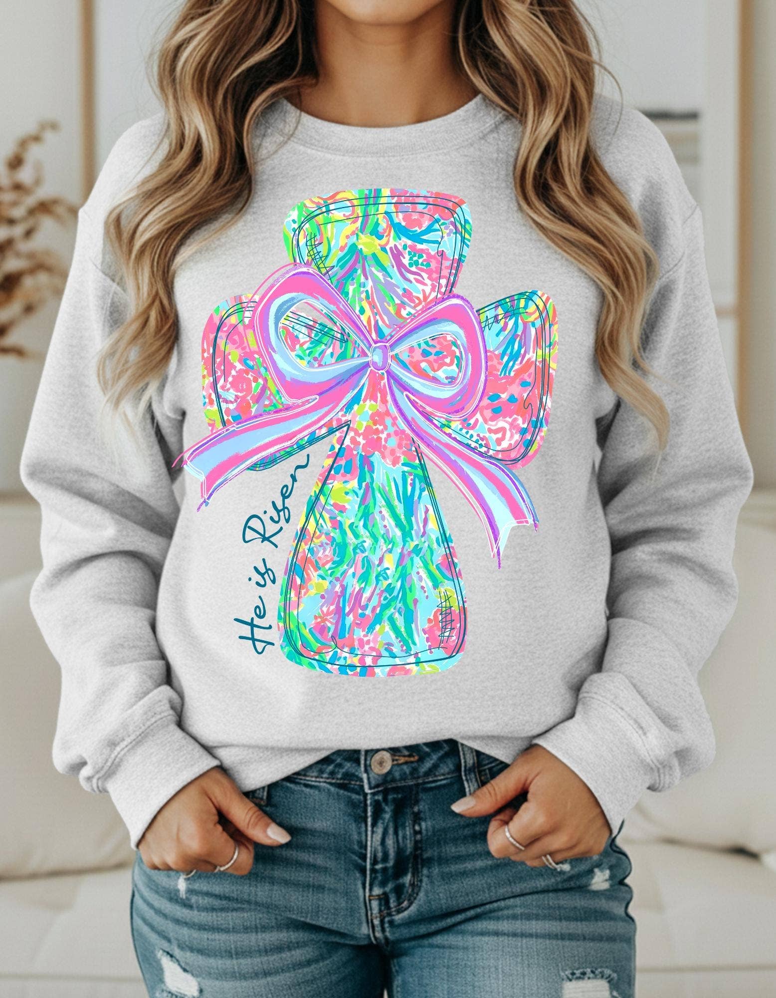 Il est ressuscité | Pâques | Nœuds à pois | Chrétien | T-shirt rose CC en vente B2B