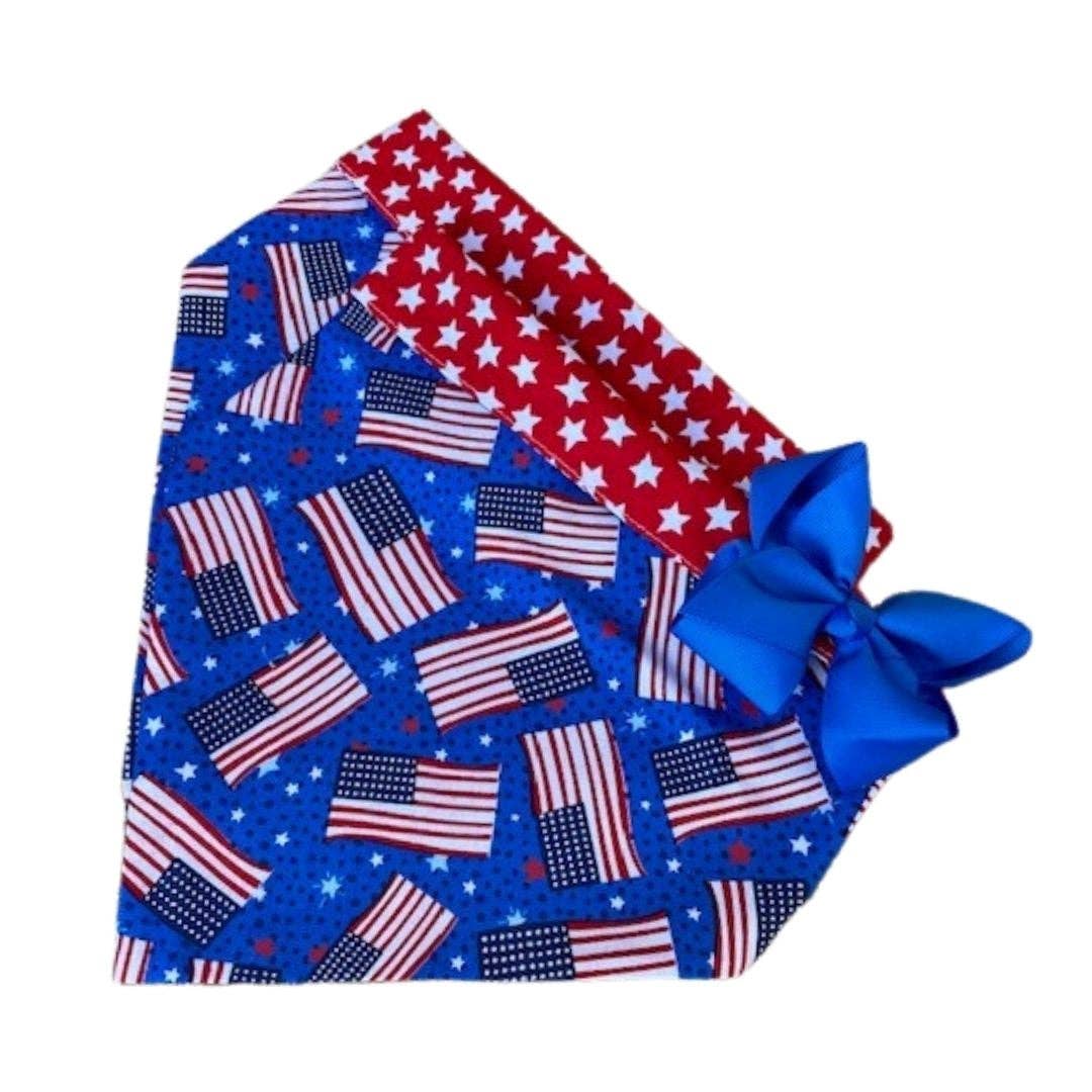 Les drapeaux américains et les étoiles américaines sont des looks classiques pour les chiots pendant les week-ends du Memorial Day et du Jour de l'Indépendance ! Ce bandana présente un motif différent de chaque côté. Ce bandana est fabriqué à partir d'un tissu de coton solide et robuste, avec deux motifs différents, un de chaque côté !