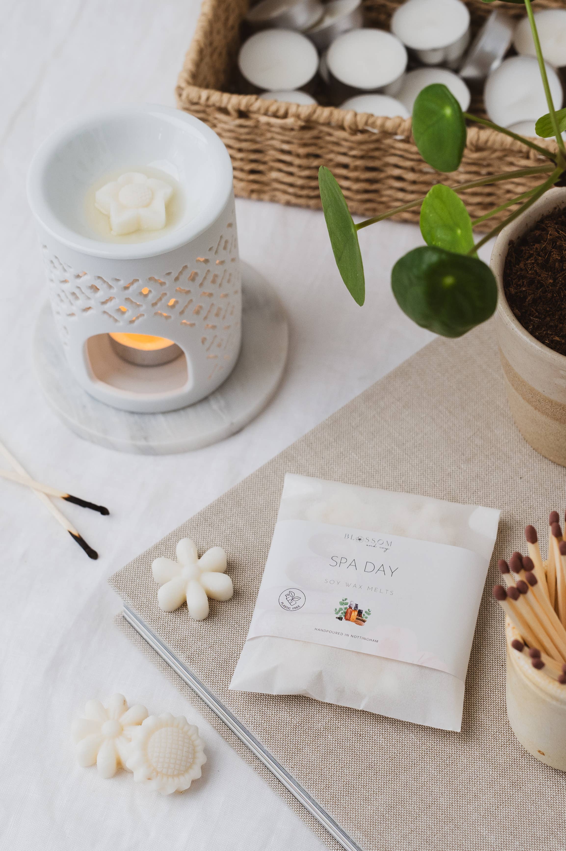 Un sachet de six cires de soja en forme de fleur, coulées individuellement, fondent, parfumées à la « brise d'eucalyptus », un parfum merveilleusement frais et vivifiant. Notes de tête : eucalyptus, menthe poivrée, menthe verte, citron vert Notes de cœur : géranium, lavande Notes de fond : bois tendre, ambre, musc Informations CLP : AVERTISSEMENT. Peut provoquer une réaction allergique cutanée. Toxique pour les organismes aquatiques avec des effets à long terme. Conserver hors de portée des enfants. EN CAS DE CONTACT AVEC LA PEAU : laver abondamment à l'eau et au savon. En cas d'irritation ou d'éruption cutanée : consulter un médecin. Contient de l'acétate de 4-tert-butylcyclohexyle, de la coumarine, du linalol, du DL-citronellol, de l'oméga-pentadécalacatone, de l'aldéhyde P-t-butyl-alpha-méthylhydrocinnamique.