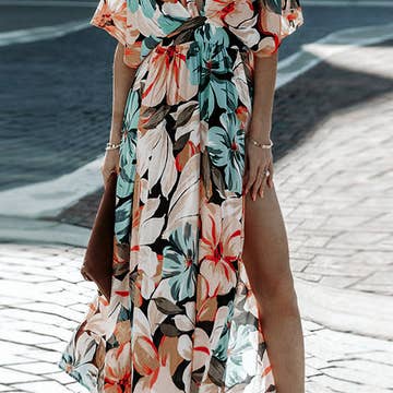 robe longue fendue haute à imprimé feuilles de palmier en vente B2B