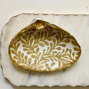 Ce superbe motif d'oursin de mer, sur fond de bleu sarcelle éclatant, est destiné à mettre en valeur votre décoration. Ce plat à anneaux en coquille de palourde est parfait pour toutes les occasions ou pour égayer la journée de quelqu'un. La coque est dorée avec des bords dorés. L'arrière de la coque est naturel. Les coques recyclées sont des créations uniques en leur genre. Il n'y a pas deux coquilles identiques. Cette coque de palourde à découper est dorée avec des bords dorés. L'arrière de la coque est naturel. Les coques recyclées sont des créations uniques en leur genre. Il n'y a pas deux coquillages identiques ! Chaque coque possède une forme et une taille qui lui sont propres. La taille, la forme et l'emplacement du design peuvent varier pour chaque coque individuelle. Taille approximative de la coquille de palourde : 4 à 5 pouces de largeur.