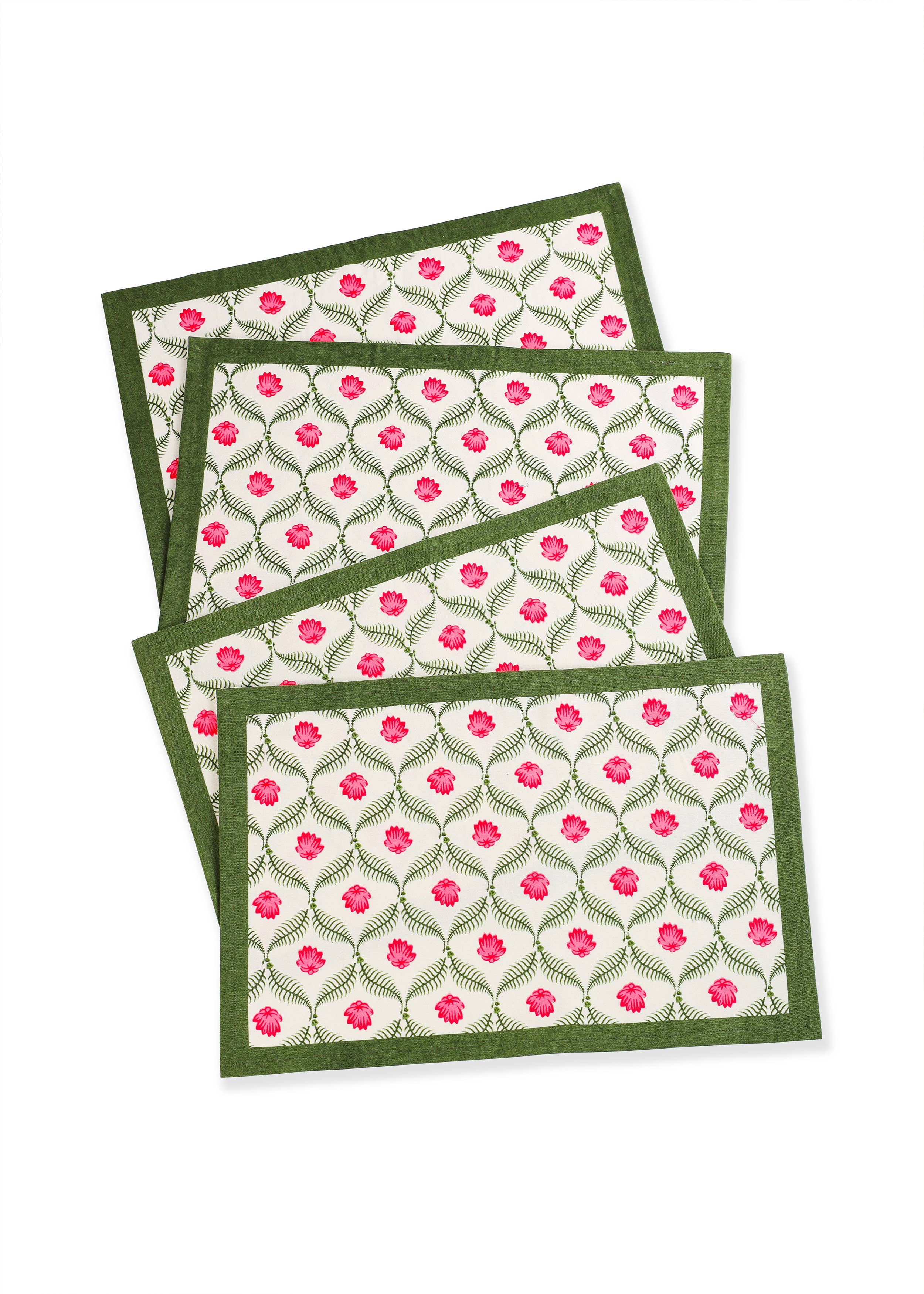 Verdoyante et luxuriante, la collection Jardin s'inspire des jardins luxuriants et mal entretenus du sud de la France. Les aquarelles éclatantes de ces sets de table animeront n'importe quelle pièce ou table d'extérieur avec une touche de beauté et de style discrets, que ce soit au printemps, en été ou au-delà. Ce linge de maison a été soigneusement imprimé à la main par des artisans qualifiés selon une technique ancestrale, ce qui en fait une pièce unique.