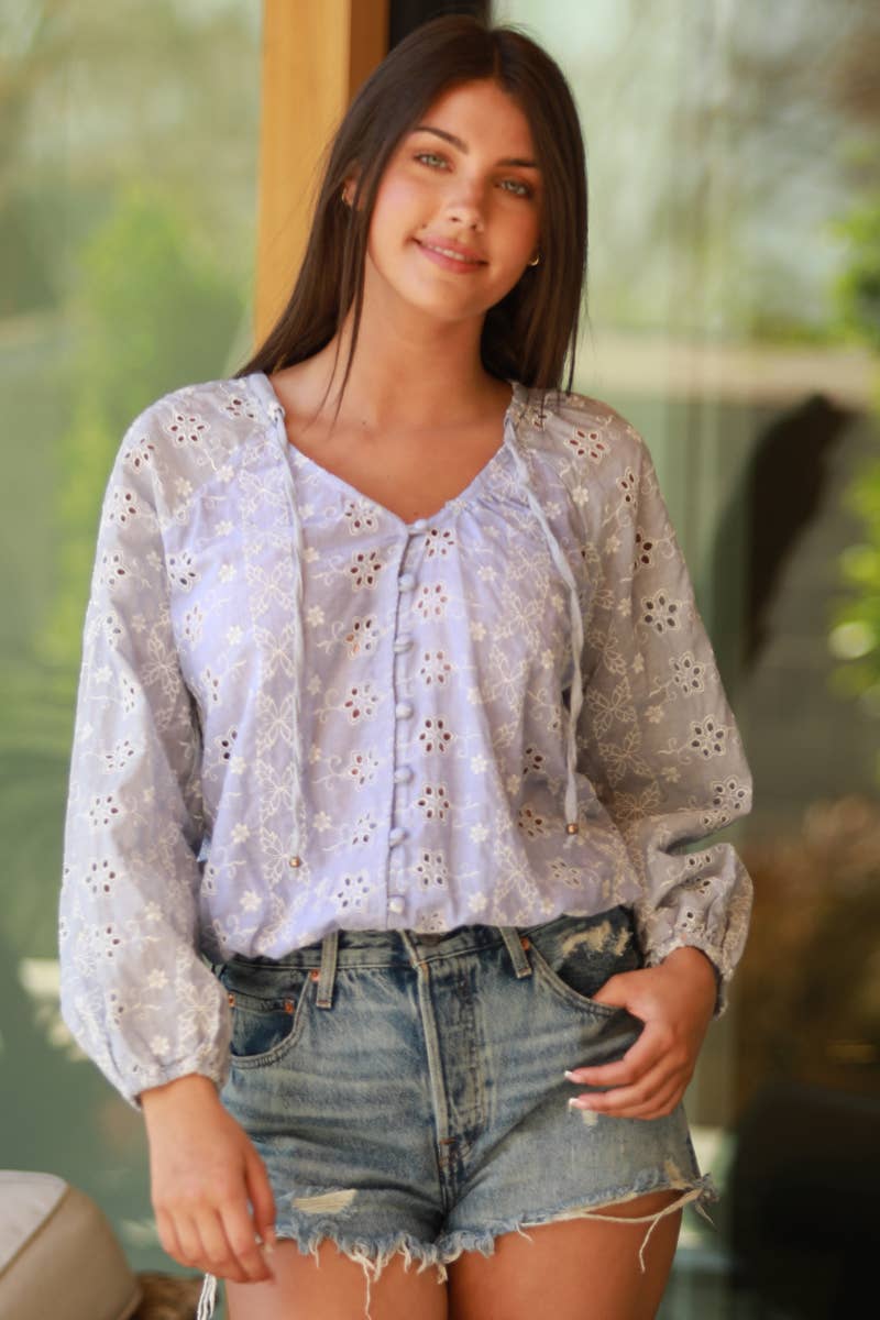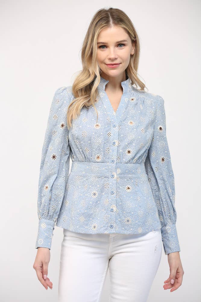 Chemisier à boutons avec manches bouffantes plissées et motif floral BOHO | S-XL