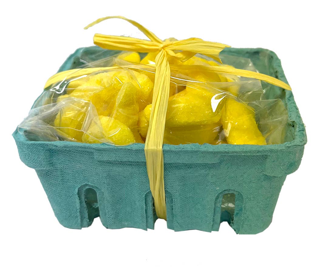 Assortiment de tranches de fruits sucrées emballées dans un panier de fruits d'épicerie. Les saveurs incluent l'orange, le citron vert, le raisin, la cerise et le citron.