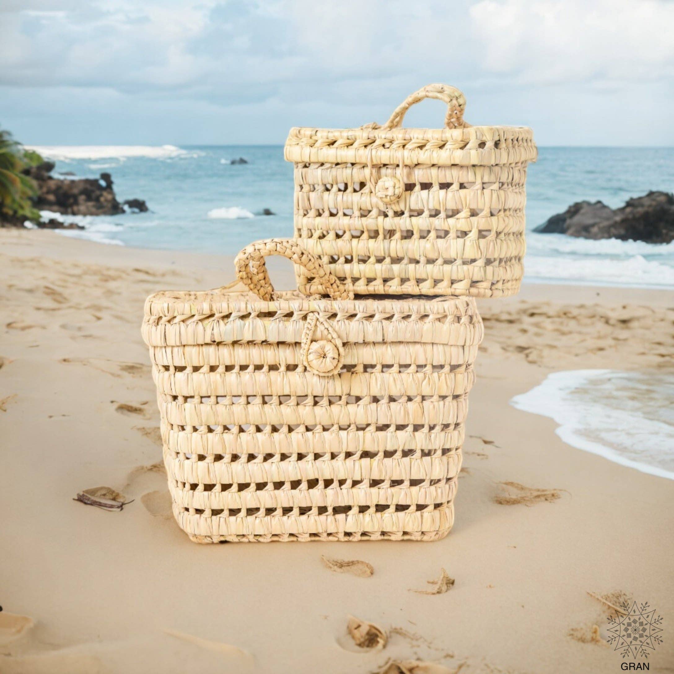 Petit panier de toilette en feuille de palmier en vente B2B