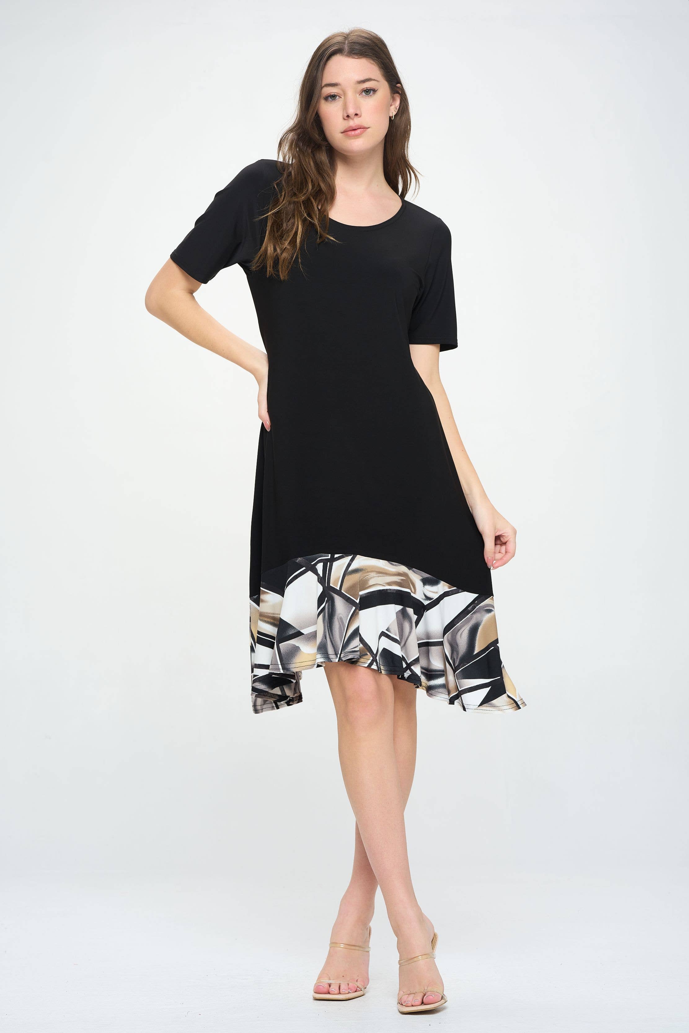 Top contrastant à col en V 3098BN-QRP1-C-W403