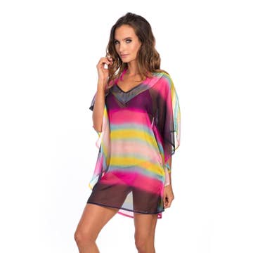 Chemise soleil. Design avec rouge, bleu, orange, vert et bleu marine.