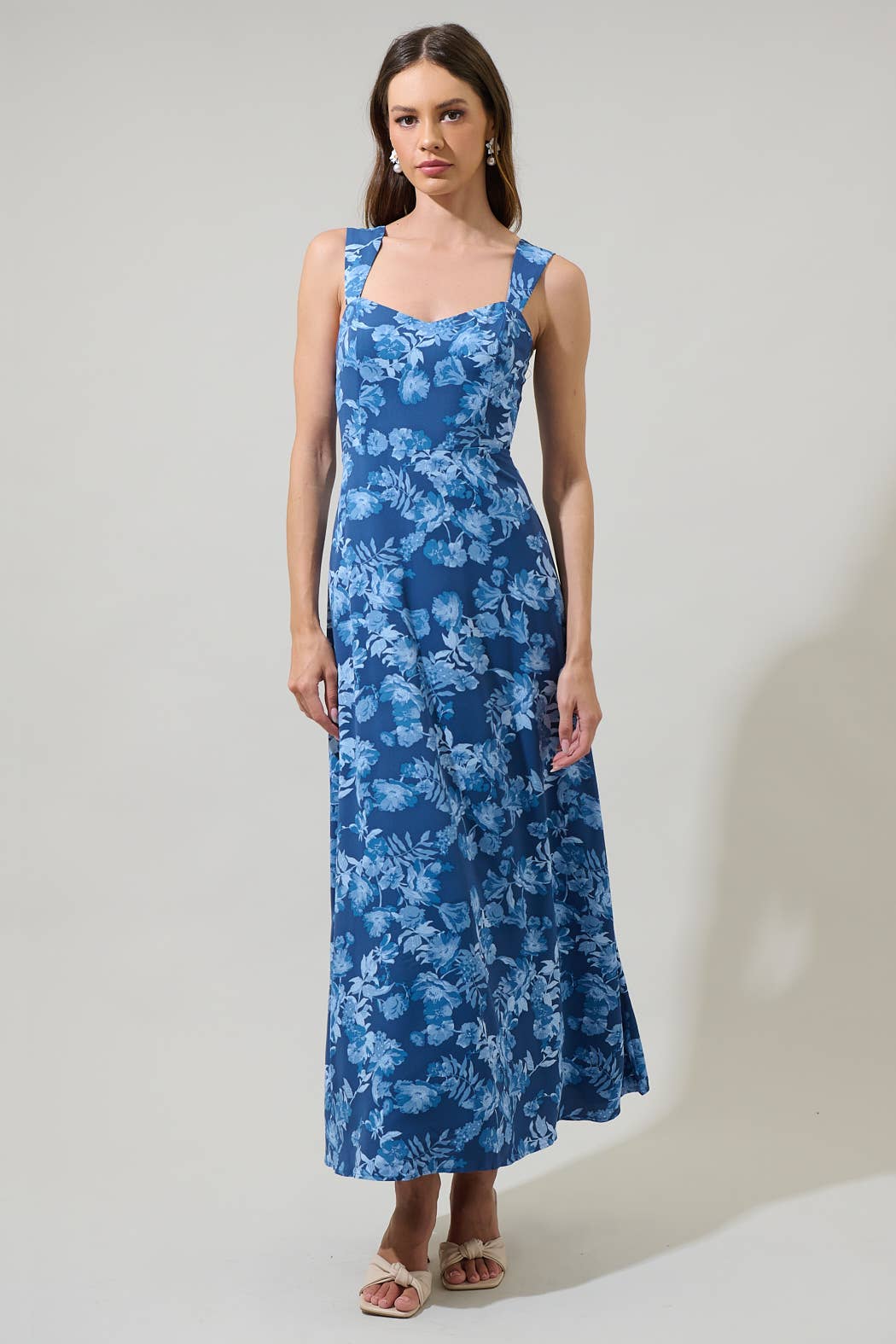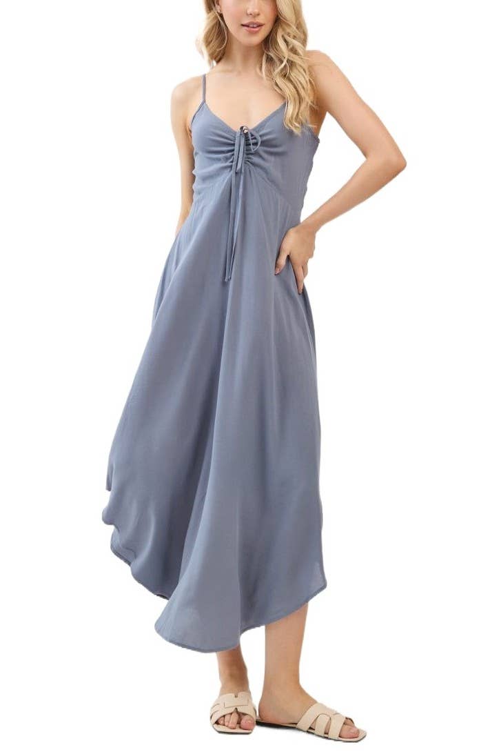 Robe longue en gaze de coton avec buste smocké, encolure carrée, bretelles spaghetti réglables, poches latérales et boutons sur le devant. La robe décontractée parfaite pour la saison printemps/été. Pas de doublure.