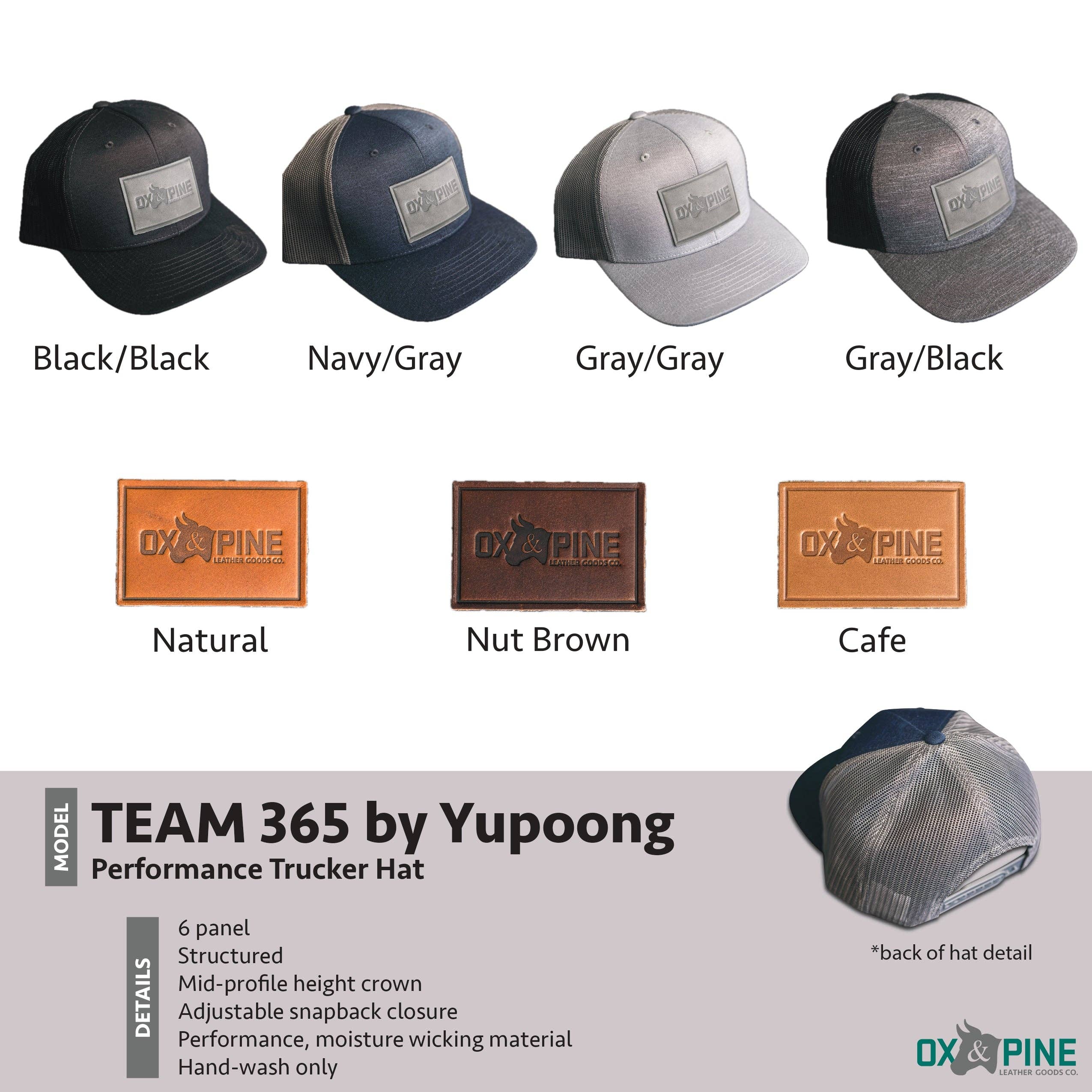 Chapeaux avec écussons en cuir de qualité.