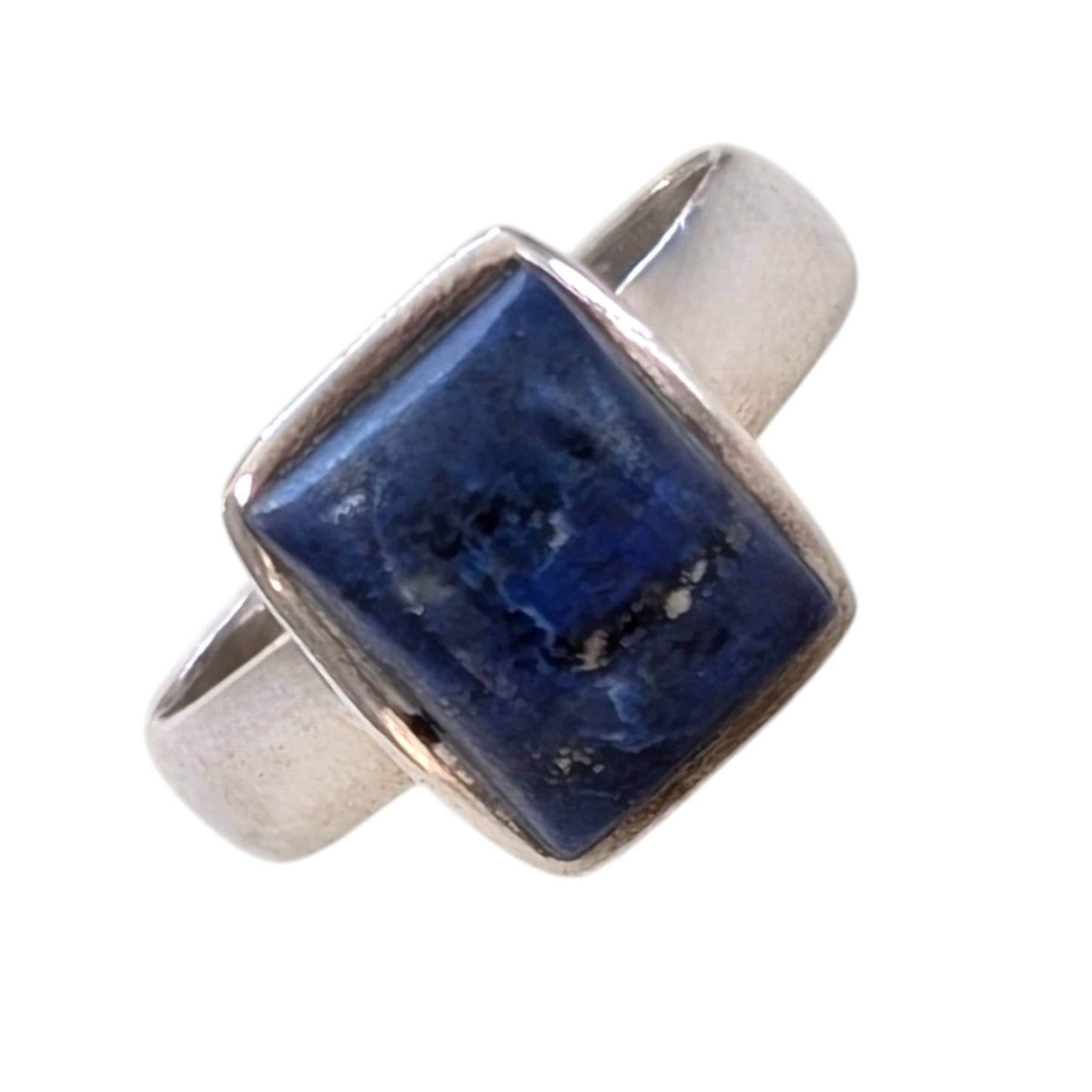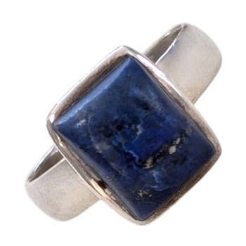 Bague en argent sterling Lapis Stone. Pierre de forme rectangulaire sertie en argent sterling 925.