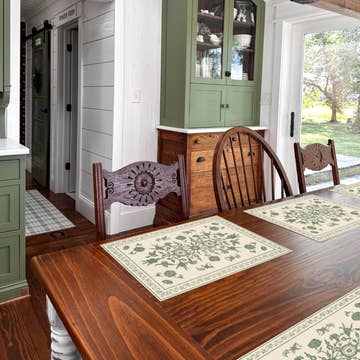 Un ensemble de quatre sets de table au design minimaliste, réalisant le contraste entre la couleur brute du tissu et la couleur noire de la sérigraphie. Tout comme les ombres qui apparaissent le matin à travers la fenêtre. Chaque set de table a des pompons en fil moutarde ou turquoise dans les coins, ce qui lui donne les couleurs caractéristiques de notre collection Lunar. Dimensions : 18 po x 14 po