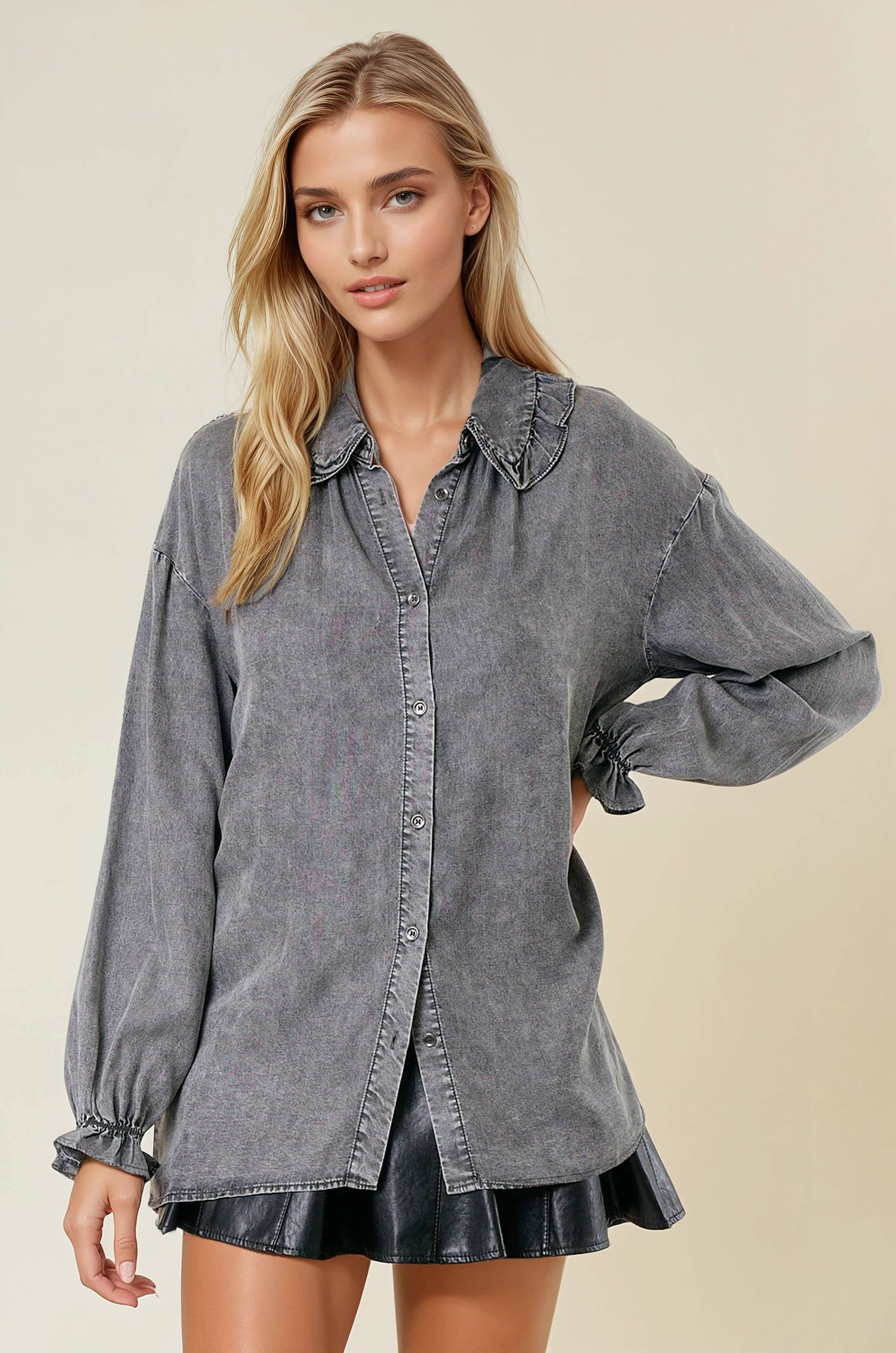 Blouse à manches retroussées avec boutons