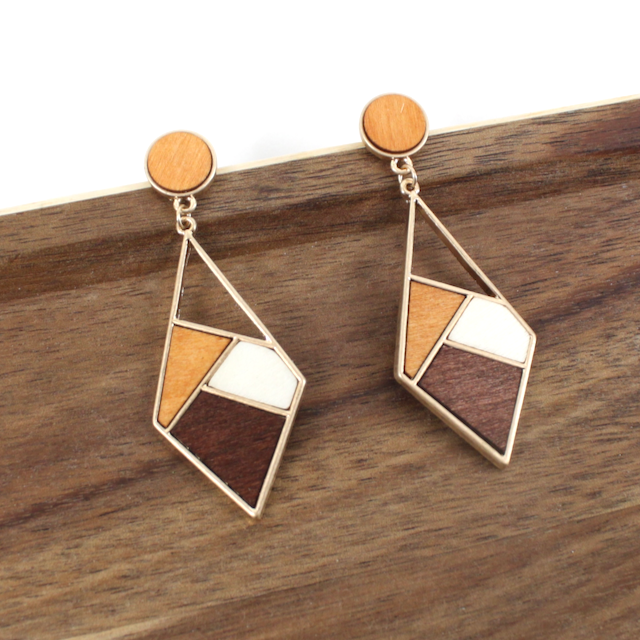 Boucles d’oreilles géométriques en bois et alliage en vente B2B