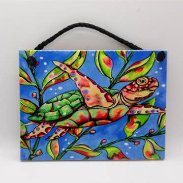 Les carreaux Frog Floral sont fabriqués en porcelaine et trempés à la main dans de la glaçure spécialement formulée par Rick. Tous nos carreaux sont fabriqués à la main dans notre studio du Michigan. Sculpté par Rick. Il y a une encoche à l'arrière pour l'accrocher, mais si vous souhaitez l'installer, elle convient également pour cela. Si vous l'utilisez à l'extérieur à des températures glaciales, assurez-vous simplement de le maintenir à la verticale. 4 x 4 pouces est une taille nominale. Les mesures réelles sont de 3,75 x 3,75 pouces avec un relief surélevé de 1,25 pouces ou moins. Support à carreaux vendu séparément. Comment est-il fabriqué ? Sculptez le dessin original, fabriquez un moule en plâtre, pressez dans de l'argile, attendez qu'il sèche, faites-le cuire au four, glacez, refaites cuire à nouveau à environ 2230 degrés. Cool. Expédiez à votre porte. Ouaii !