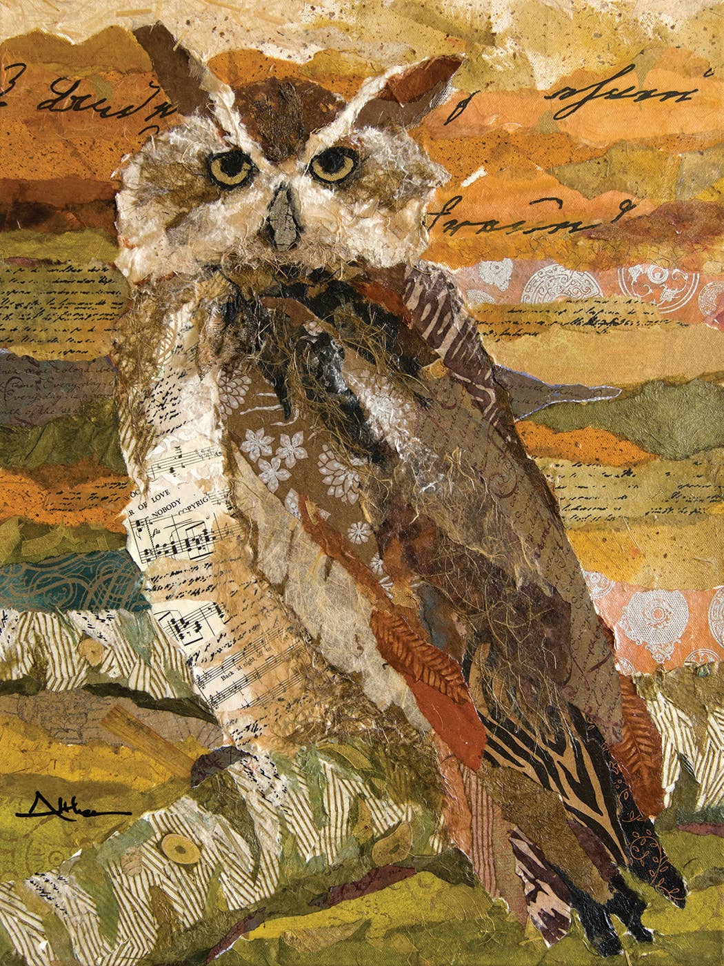 Hibou rayé encadré en acrylique 1 impression