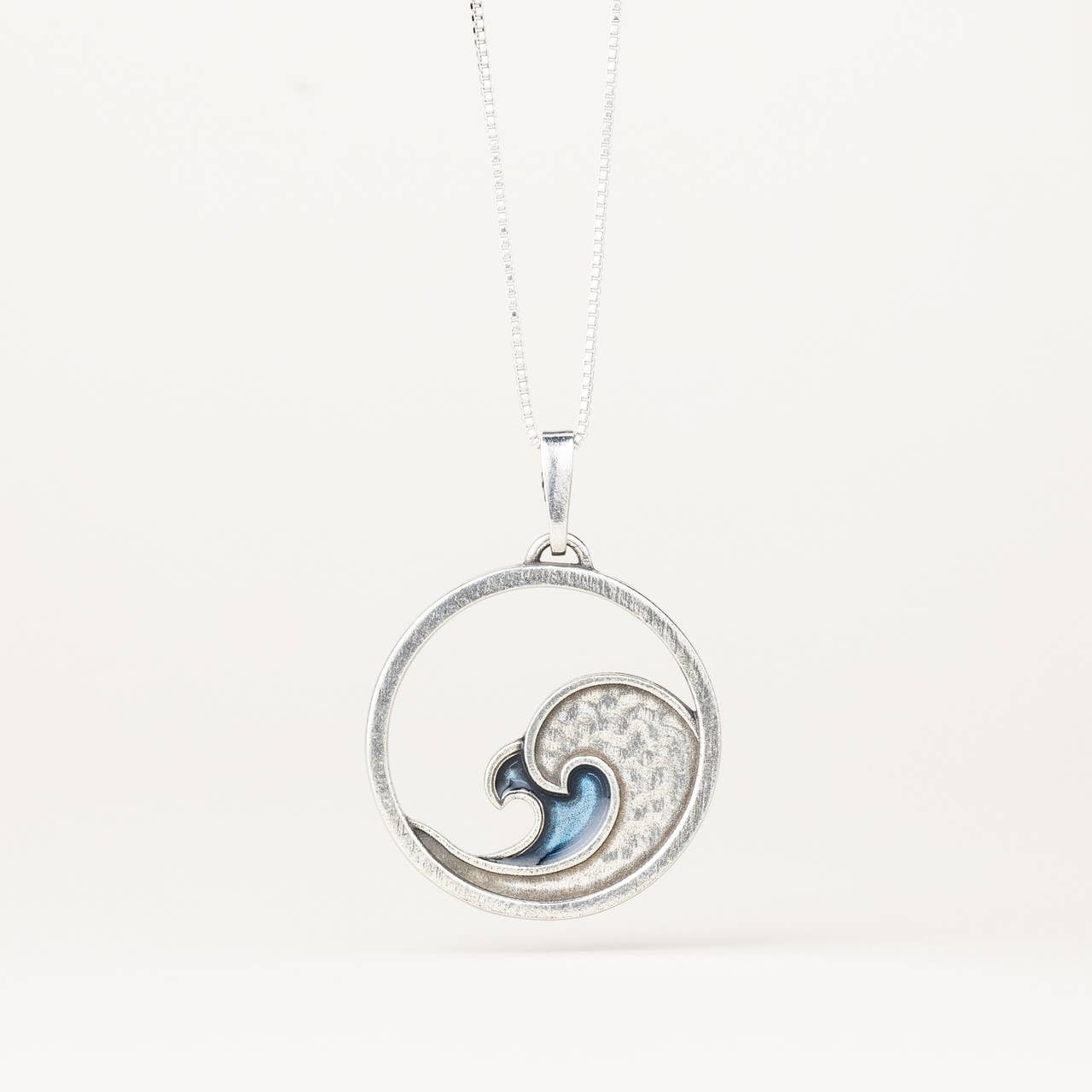 Ce collier présente un pendentif en acier inoxydable avec un motif de vague peint à la main, inspiré par le mouvement de la côte. Chaque pièce intègre du sable naturel, rendant chaque pendentif subtilement unique. Les détaillants peuvent choisir de faire créer le collier avec du sable générique ou avec du sable spécifique à un lieu. Pour les commandes spécifiques à un lieu, 1/2 tasse de sable peut être envoyée par courrier par le détaillant, ou l'artiste peut utiliser du sable déjà disponible dans la collection existante, le cas échéant. Veuillez envoyer un message pour confirmer avant de commander. Fini avec une chaîne en acier inoxydable ajustable de 16 à 18 pouces, ce collier est durable, léger et conçu pour être porté au quotidien.