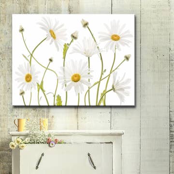 Impression artistique Floral - Bleu sarcelle avec marguerites blanches en vente B2B