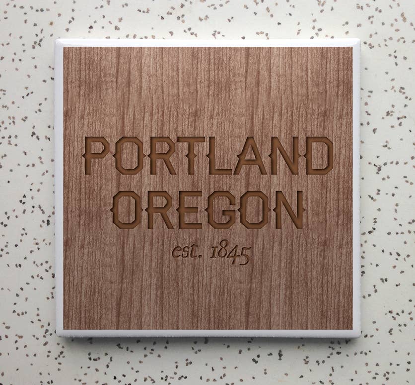 Dessous de verre en céramique avec carte illustrée de l'Oregon en vente B2B