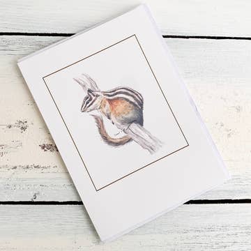 Chipmunk est l'un des plus récents designs de cartes de Little Lark et est parfait pour toutes les occasions. Carte vierge mesure 4.25" x 5.5" (A2) et imprimée sur du papier 100% recyclé. Fabriqué à Portland, Oregon. Matériaux : encre, papier recyclé
