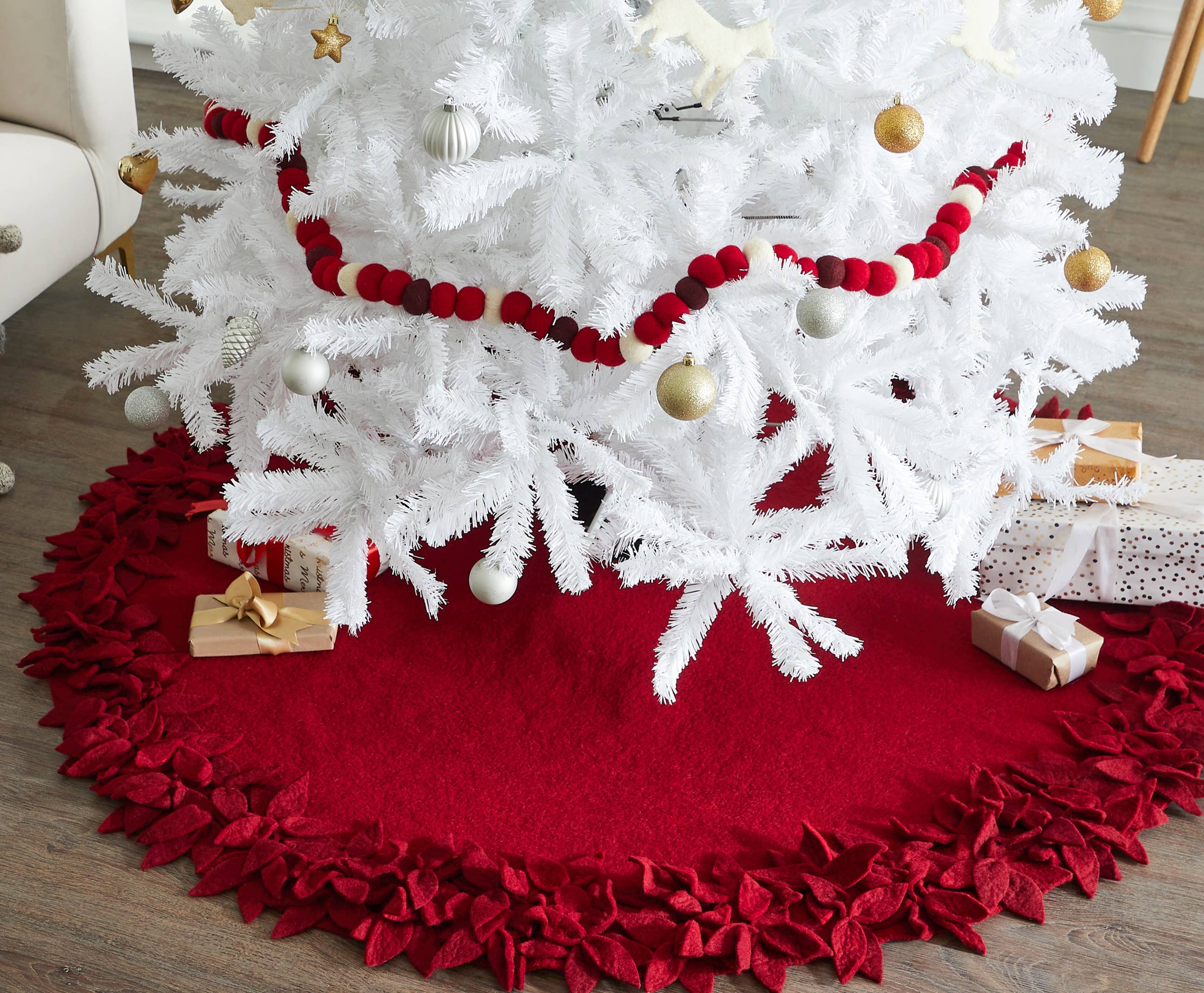 Jupe de sapin de Noël en laine feutrée à la main - Fleurs superposées en vente B2B
