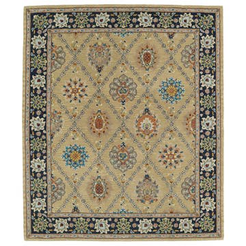 Ce tapis noué main est fabriqué en laine filée à la main. Les couleurs magnifiques du tapis perpétuent l'héritage célèbre des tapis Heriz, dont le design traditionnel complète votre espace sans le surcharger. Les tapis Heriz sont très durables et peuvent durer des décennies avec un entretien approprié. - Noué main - Fabriqué en laine douce - Couleurs : rouille et bleu - Densité : 20 nœuds par pouce carré - Fabriqué sur commande Les tapis Heriz proviennent de la ville de Heriz dans la province d'Azerbaïdjan-Est, au nord-ouest de l'Iran. Ces tapis sont produits depuis des siècles et représentent une tradition artistique. Ce modèle spécifique est fabriqué en Inde, dans la ville de Bhadohi, l'un des plus grands centres de fabrication de tapis.