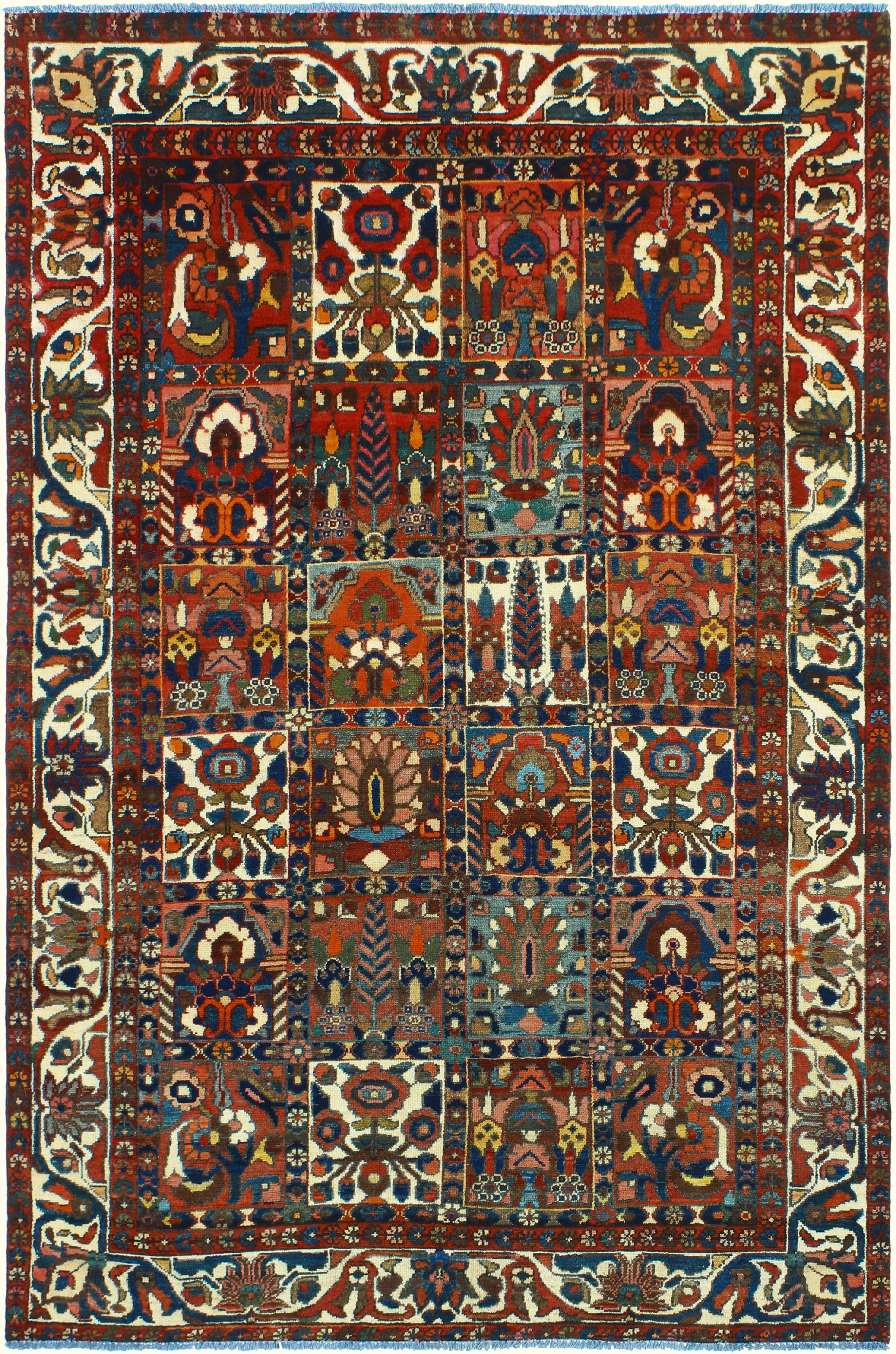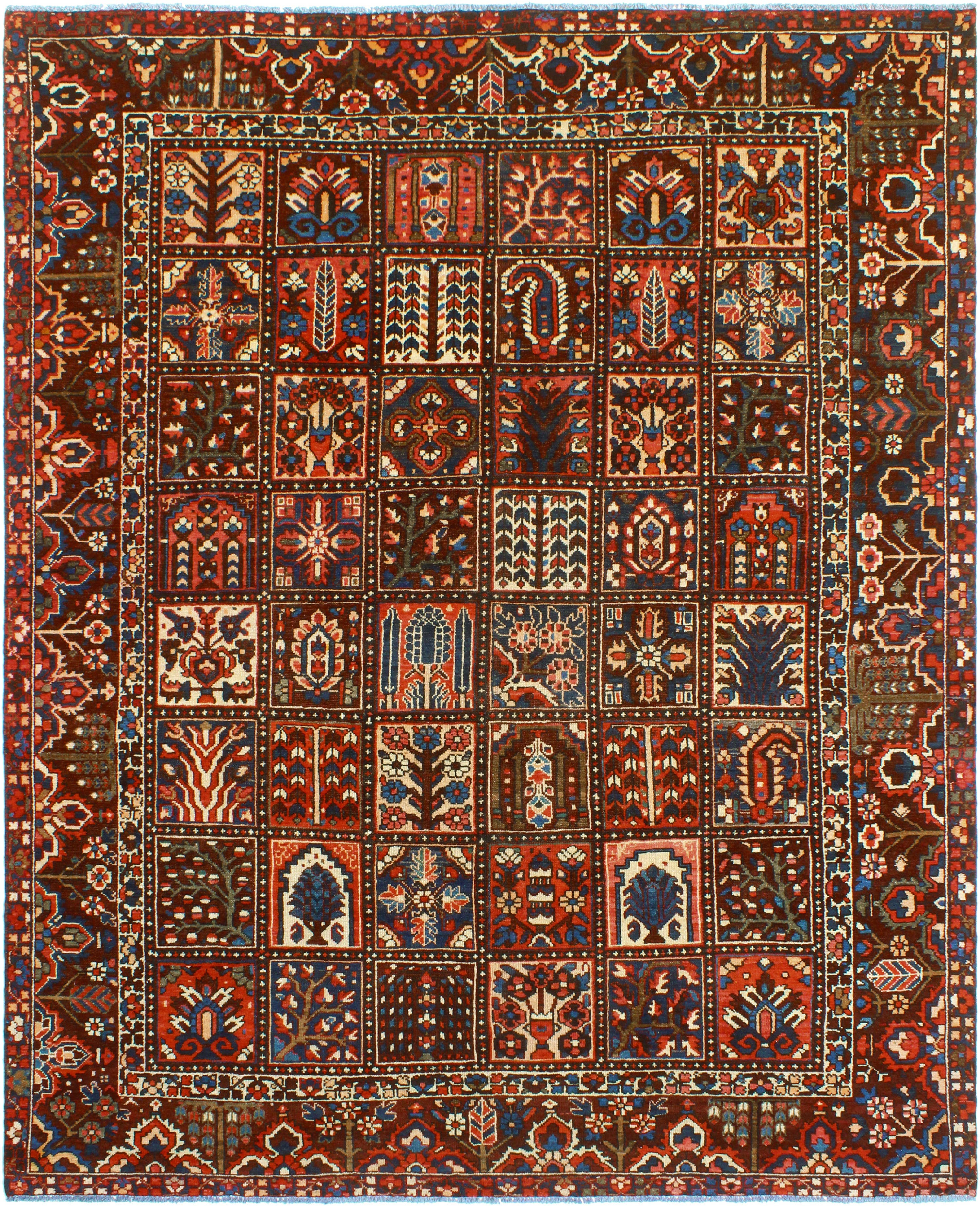 Tapis Persan Heriz Serapi traditionnel vintage noué main en laine, couleurs rouille et bleu, formats 20x25, 23x30, 25x35 et 30x38 cm | TRDCP204