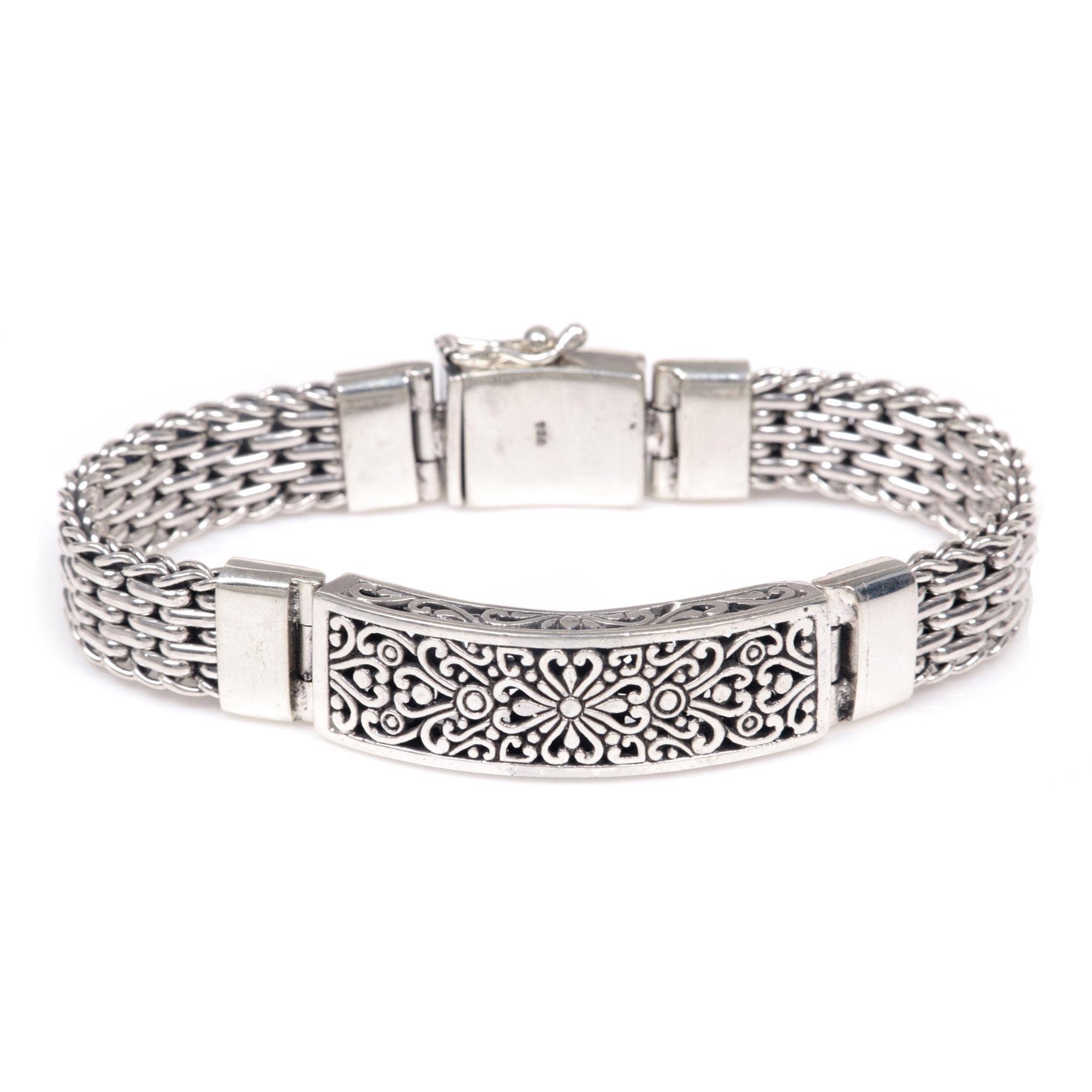 FR6439 2-2 Bracelet extensible en métal filigrané argenté antique en vente B2B
