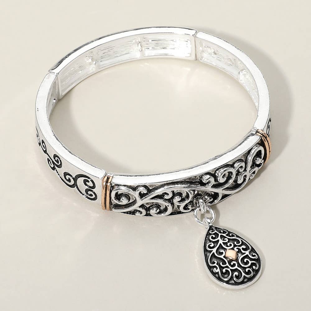 FR6439 2-2 Bracelet extensible en métal filigrané argenté antique