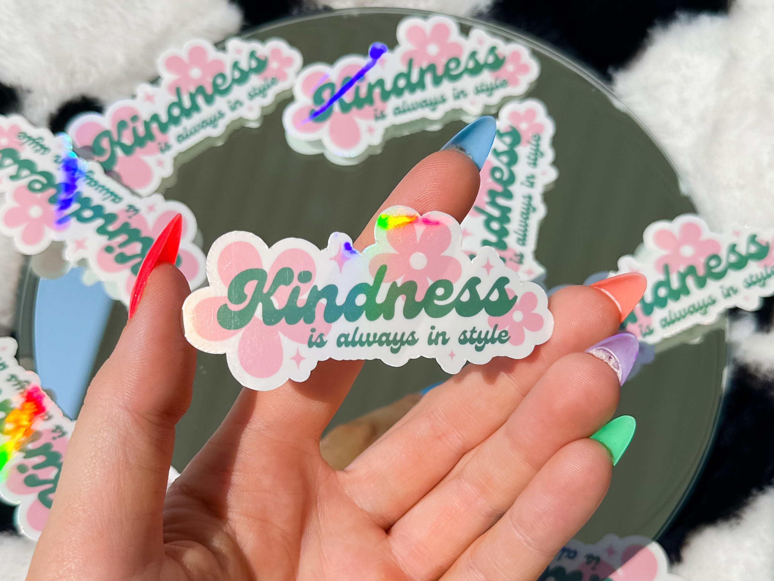 Nous traversons tous quelque chose ! Alors, s'il vous plaît, soyez gentil avec moi ! L'autocollant en vinyle brillant et imperméable mesure 3,7"x1,5" et présente un fond à paillettes holographiques. Matériaux et entretien : ♥ entièrement imperméable ♥ Protection UV pour résister aux intempéries et au soleil ♥ Durée de vie extérieure minimale de 2 à 4 ans Autocollant parfait pour votre ordinateur portable, bouteille d'eau, cahier, et même votre voiture ! 10 % de toutes les ventes sont directement reversés pour soutenir des organisations communautaires.