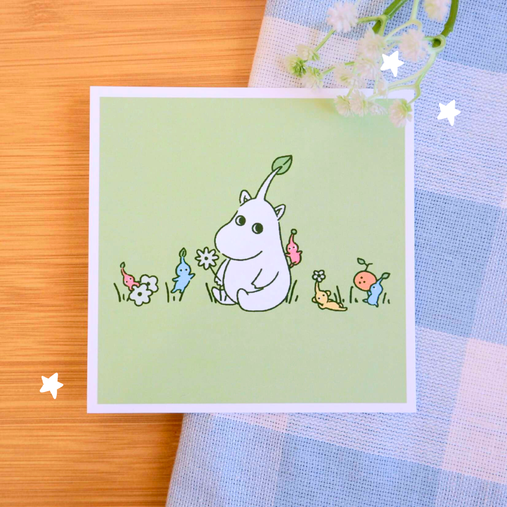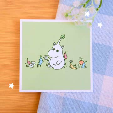 Impression couleur miniature de 4 x 4 pouces sur papier photo mat. Chaque impression est emballée dans une pochette en plastique avec un morceau de carton aggloméré 22 points comme support. Je signe à la main chaque impression au dos avec ma signature et l'année de première publication. Je place un petit autocollant au dos avec l'adresse de mon site Web et le format d'impression. Les impressions sont sans bordures ou découpées jusqu'au bord de l'illustration. Imprimé, découpé et emballé dans mon studio. Le dessin original a été réalisé au marqueur et à l'aquarelle sur du papier toilé. Représente un petit Totoro bleu tenant une feuille, inspiré du film Mon voisin Totoro.