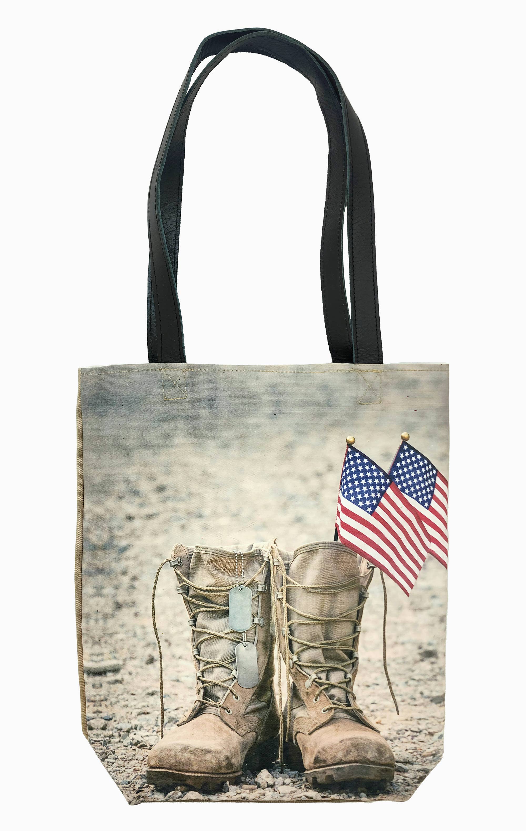 Notre sac fourre-tout en toile de tente militaire recyclée est doté de poignées en cuir et d'une ouverture sur le dessus avec fermeture à pression magnétique, d'une poche intérieure, d'une impression de style vintage sur le devant et est entièrement doublé. AVERTISSEMENT : Nos sacs en toile de tente militaire recyclée sont un hommage et un rappel des sacrifices et des contributions des anciens combattants militaires. Sachez que ces sacs sont fabriqués à partir de véritables tentes militaires usagées et ne sont pas de nouvelles toiles emballées comme des tentes ou bâches recyclées. CE SONT LES VRAIS DE VRAI !! En conséquence, le matériau de la tente présentera des signes d'imperfections d'usure qui ajoutent à son caractère. Chaque sac présente des différences d'imperfections authentiques, de taches et de couleurs. Votre sac sera aussi unique que l'expérience de chaque soldat cherchant refuge dans ces tentes, que ce soit sur le terrain d'entraînement ou en zone de combat. Toutes les ventes sont finales.