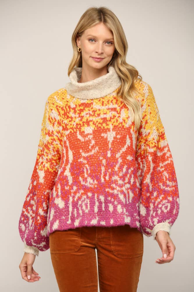 COCAT Pull Rond Tricoté Imprimé Chats Blancs LOOWIE Taille Unique Fabriqué en Italie 62% Polyester 33% Viscose 5% Élasthanne