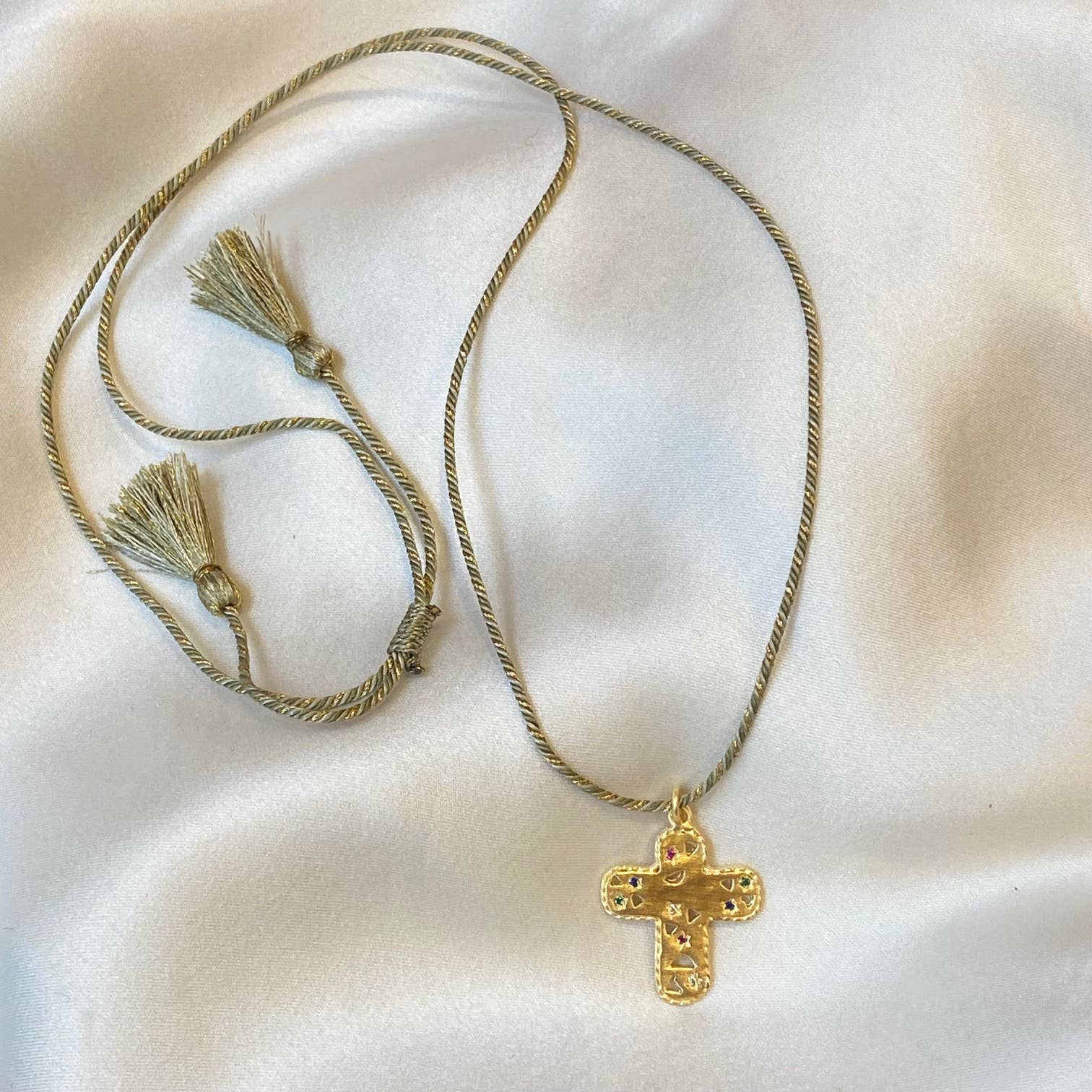 Collier fil pendentif trèfle serti de rubis, spinelle, zircon bleu et vert et topaze blanche Fermeture et longueur ajustable par un noeud coulissant Le style bohème chic par excellence Occasion: Noël, Saint Valentin, fête des mères, anniversaire, cadeau femme, bijoux femme, accessoire femme, bijoux été
