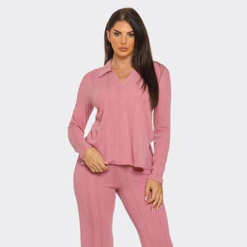 Haut à col en V en microfibre brossée Plus Dty et cycliste en vente B2B