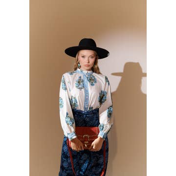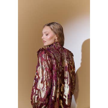 Blouse Aitana en fil métallisé à col montant volanté en vente B2B