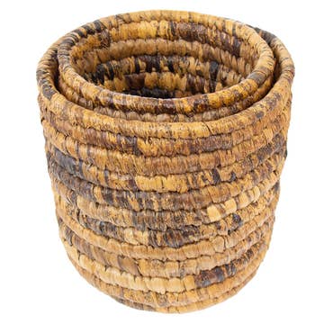 Panier incroyablement polyvalent, le panier cylindrique Kaisa 10" est fabriqué à la main par des fabricants au Bangladesh d'herbe de kaisa et d'emballage de coton. Que vous recherchiez une corbeille à papier, une corbeille à chaussures, un organisateur de jouets, un panier à plantes ou tout autre corral encombrant, le panier cylindrique Kaisa, disponible en différentes tailles, peut faire le travail avec style et durabilité. Matériaux : herbe kaisa, coton - 10 « Dx10"H - Photo avec notre panier cylindrique Kaisa 12", SKU 6603730 - Fabriqué à la main au Bangladesh