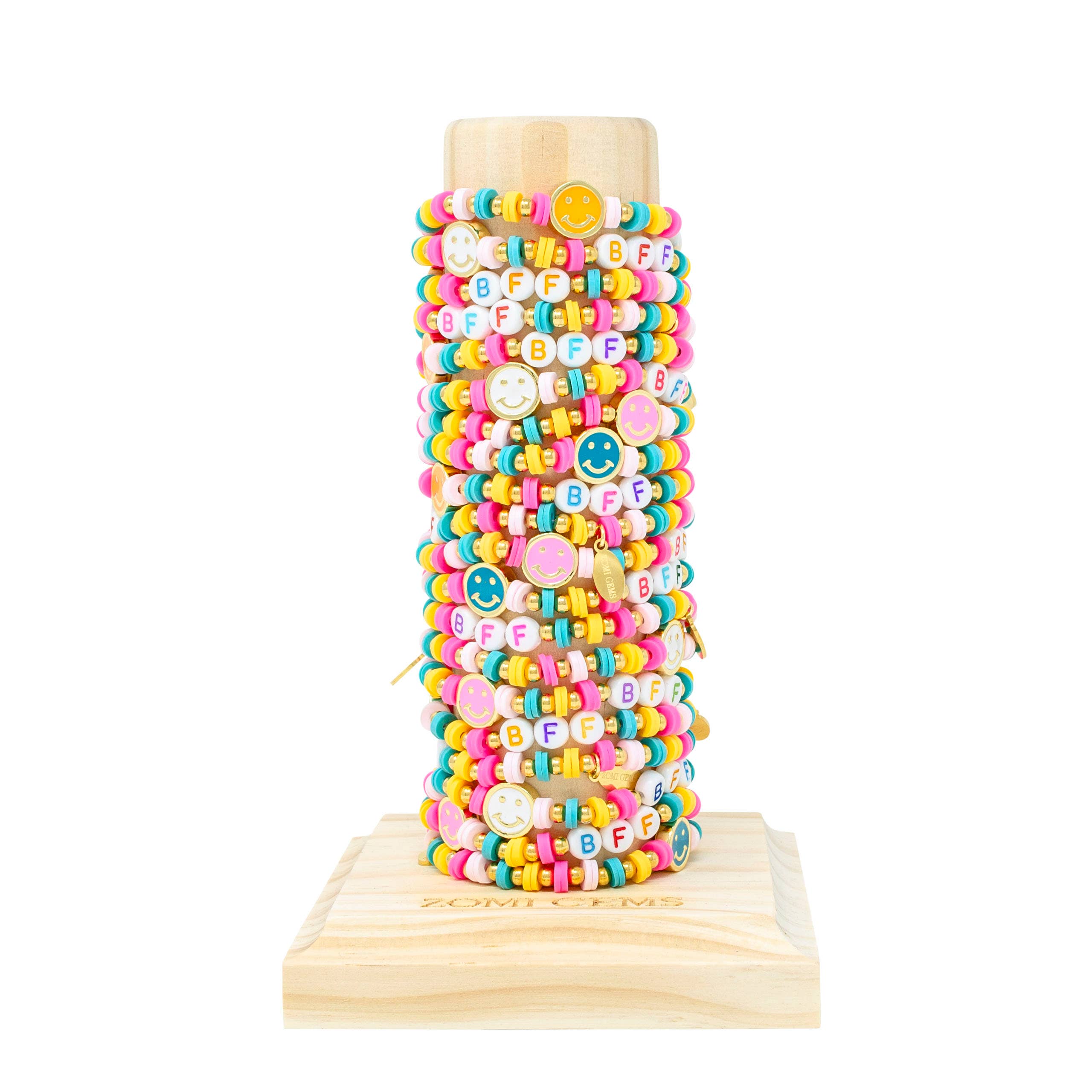 Colorée, ludique et charmante, cette tour de bracelets ultime attirera le regard des jeunes acheteurs ainsi que de leurs parents et grands-parents ! L'ensemble comprend 54 mini bracelets en perles de rocaille et un présentoir acrylique GRATUIT. Contenu de la boîte de 54 pièces : • 54 bracelets (assortis) • 1 tour de présentation en acrylique (GRATUIT) • Prix par bracelet : 2,50 $ soit 135 $ par boîte • Vous recevez 1 tour, pas 54 tours Permettez à vos clients de mélanger leurs modèles préférés pour créer une pile de bracelets colorée ! La tour comprend 6 designs vifs, incluant : arc-en-ciel, rose clair, rose vif, bleu, orange et rayures arc-en-ciel. Designs adaptés aux enfants, tendance + qualité adulte = enfants et parents ravis • Bracelet extensible pour s’adapter à diverses tailles • Perles de rocaille miniatures colorées et lumineuses
