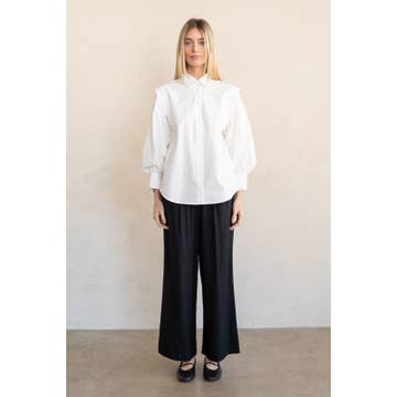 Blouse en lin blanc à nouer sur le devant Style EuroChic d'automne en vente B2B
