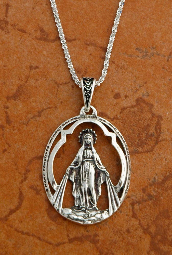 Collier St Gérard pour grossesse | Collier à breloques Saint de la Grossesse Saint Gérard sur un collier chaîne serpent plaqué argent de 22 pouces avec une belle breloque de fertilité St Gérard pour femme en vente B2B