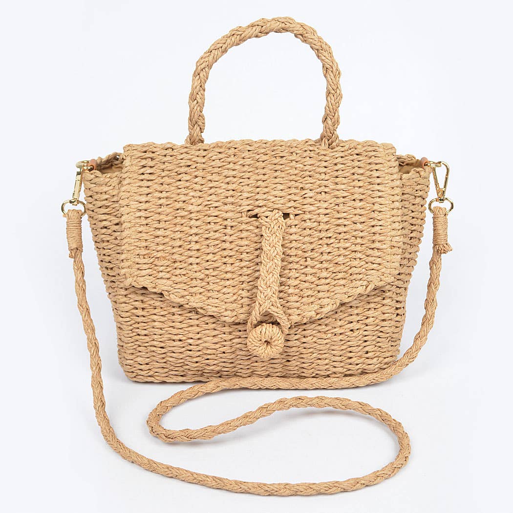 Sac à rabat avec poignée supérieure en fausse paille en vente B2B