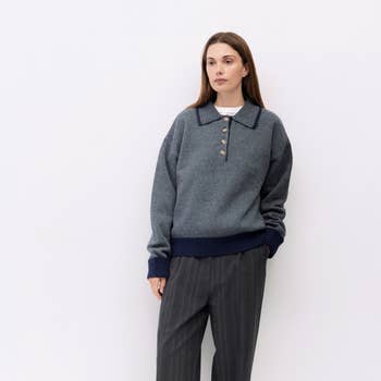 Le pull Bynn est un col roulé en grosse maille avec une fermeture partielle à boutons sur le devant, des manches longues raglan et un tricot pointelle épais qui combine chaleur et texture dans une silhouette audacieuse.