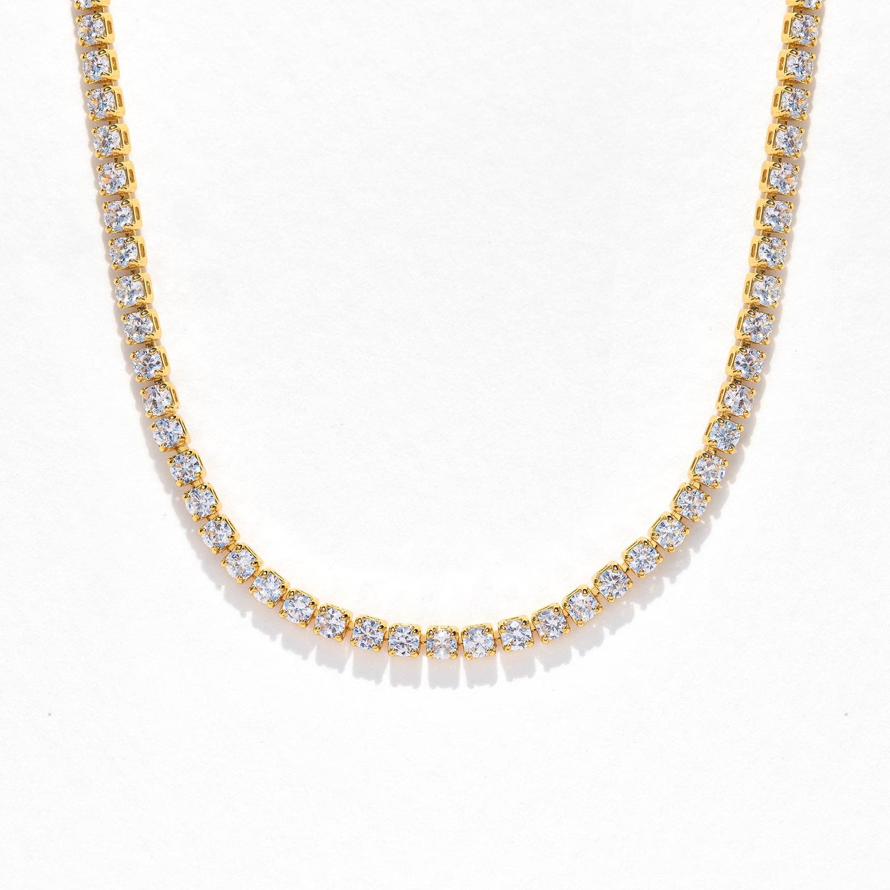 Brillance intemporelle, durabilité moderne. Ces colliers de tennis étanches présentent une rangée continue de pierres éclatantes serties dans de l'or, offrant une étincelle toute la journée avec une touche raffinée. Conçus pour briller à chaque instant—élégants sans effort, infiniment portables. Détails : Acier inoxydable doré Résistant à l'eau, à l'épreuve du ternissement
