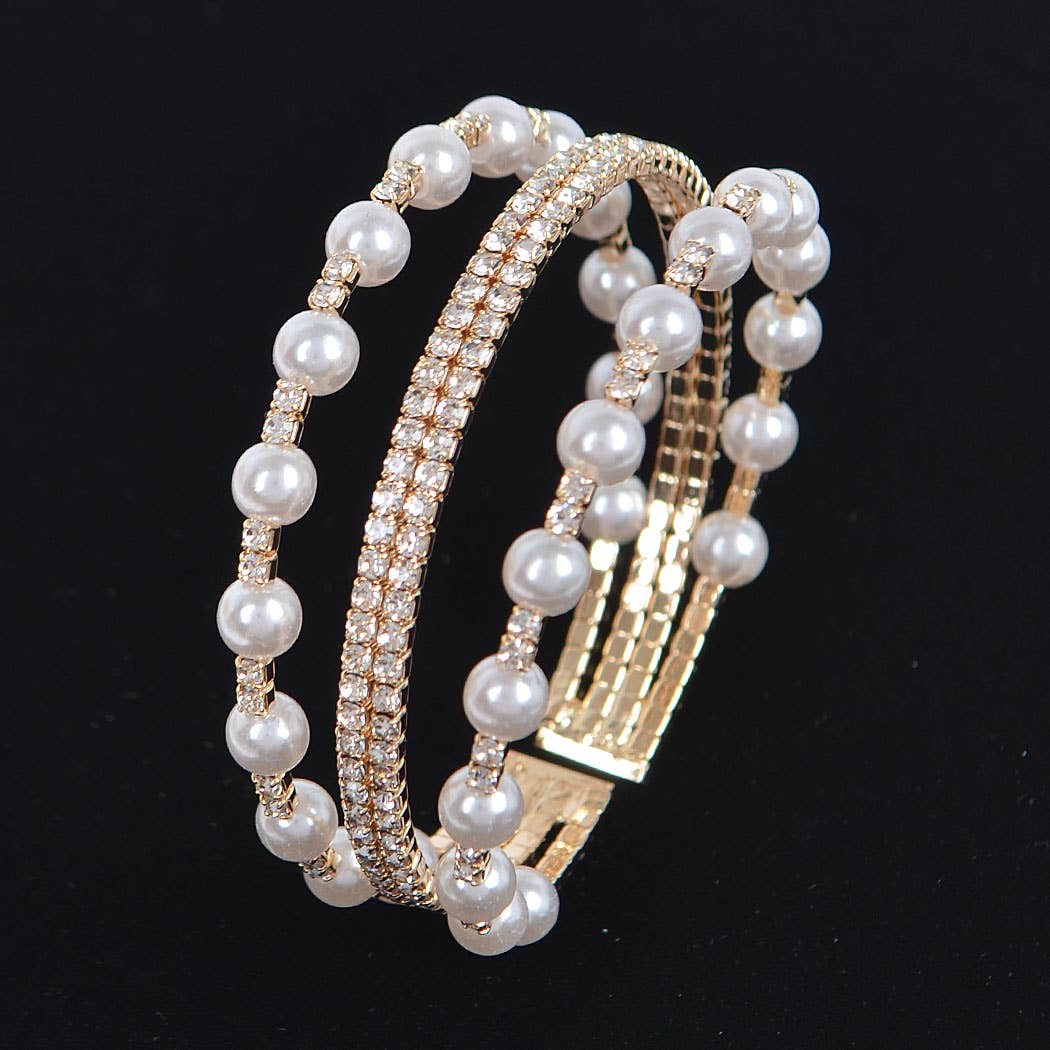 Bracelet enroulé perlé en perles de coquillage argent/champagne en vente B2B