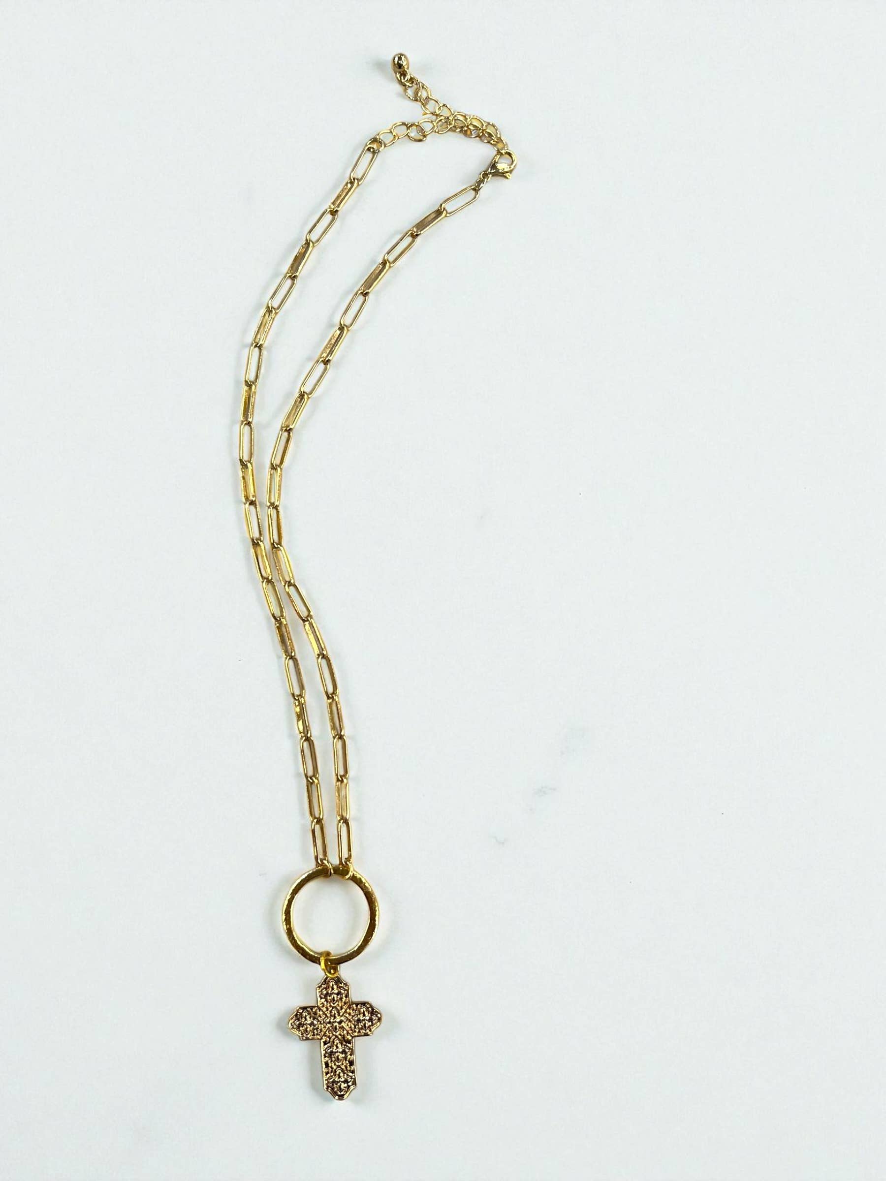 Collier à bascule en forme de croix en or moulé à la main