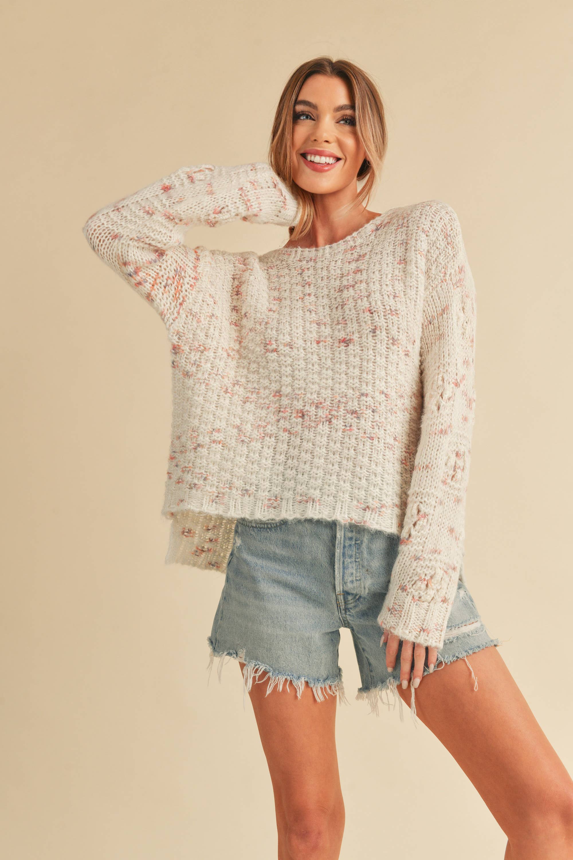 Pull à manches bracelet en tricot ajouré LDC avec épaules tombantes